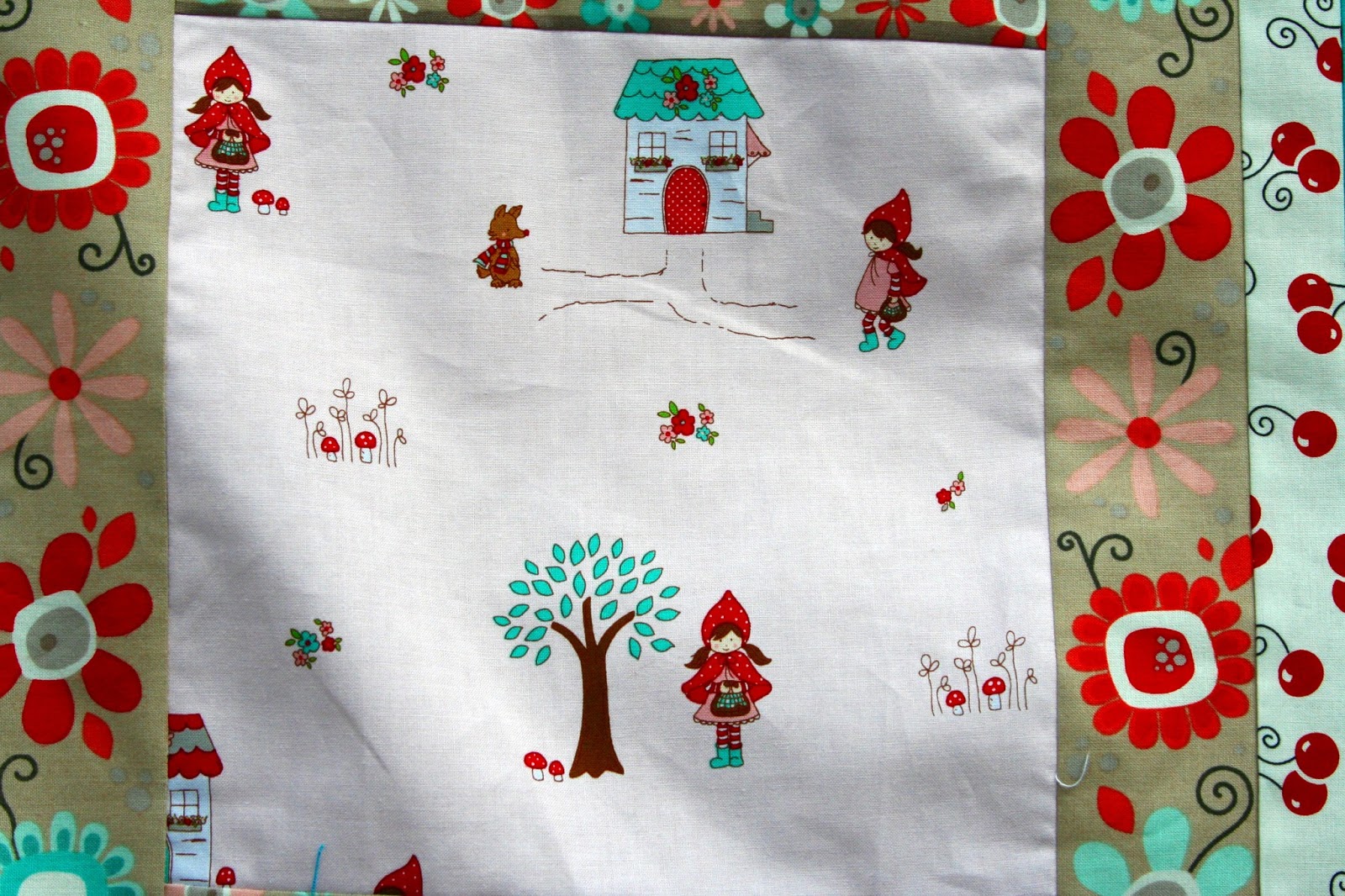 So far tonight I’ve broken 6 new needles on the machine. It’s been frustrating, but I think I’m working out the kinks. HOWever, 5 replacement needles was all I had so the remainder of the quilting will have to be done after our holiday camping trip. I was hoping to have it done and one side of the binding sewn on so I could hand stitch the rest while relaxing by the campfire but that was not to be. See you next week Lil’ Red. I know you’ll be waiting for me.