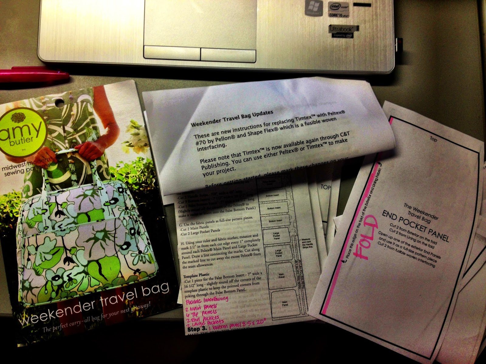I am SO excited.  Guess what arrived in the mail yesterday?  My Amy Butler Weekender Bag pattern!
